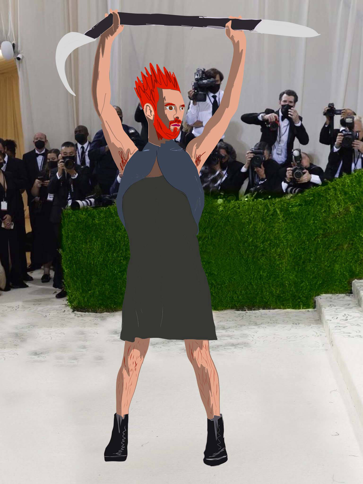 Fashion goes thought times, crisis, problems, ecology and has always been active, valid and influent on society. In this artwork I review designers I admire, re-signify and in a performative act I design on my very own body, fashion proposals for a world that may end in next couple of years. One of the artworks from this collection was exhibited in August 2021 in Parabita - Italy within the framework of the "Proud Lovers" exhibition organized by the Italian association La Scatina.