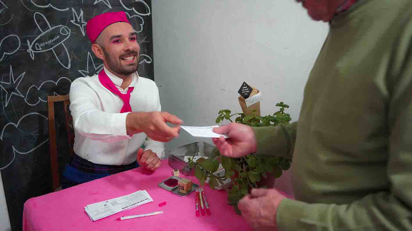 For this job, I also made interventions in the promotional images and performed at the entrance to the theater.